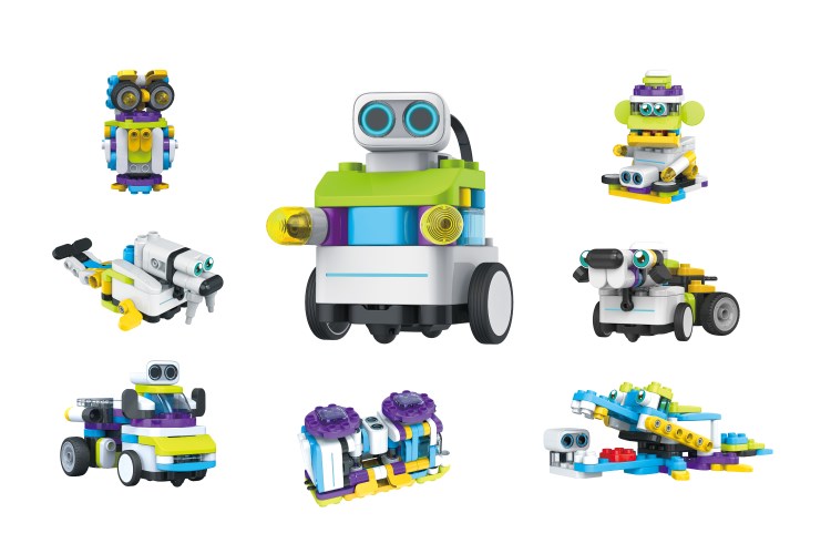مجموعة روبوتات تعليمية قابلة للبناء من المكعبات، مثالية للأطفال لتعلم مفاهيم البرمجة والروبوتات بطريقة ممتعة وتفاعلية. تحتوي المجموعة على قطع ملونة تتيح للأطفال بناء عدة نماذج مختلفة مثل روبوت، سيارة، طائرة، وكلب آلي والمزيد. هذه المجموعة تعزز مهارات التفكير المنطقي، الإبداع، وحل المشكلات، وهي مناسبة للأنشطة التعليمية داخل الصف أو في المنزل.